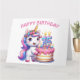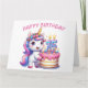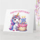 Bonne carte d'anniversaire 15e. Il a quinze ans aujourd'hui. Cute Unicorn aux couleurs rose et lilas. Un gâteau d'anniversaire coloré avec des bougies. Une adorable carte d’anniversaire pour enfant. Cette carte est vide à l'intérieur pour votre propre message. Également disponible en téléchargement numérique pour transfert vers d'autres produits.