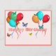 Une carte d'anniversaire avec ballons et papillons