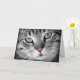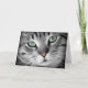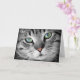 Bonne carte d'anniversaire avec le visage d'un chat tigré noir, gris et blanc. Faites plaisir aux fans de chat à l'occasion de leur anniversaire !