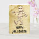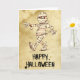 Une caricature d'une momie avec les mots Happy Halloween en bas et contre un vieux parchemin qui a l'air arrière - plan. Faites une grande invitation à votre fête d'Halloween ou juste pour dire bonjour.