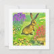 Une belle carte de Pâques avec un message de Pâques Joyeux personnalisable Sur l'illustration, un petit lièvre timide s'occupe dans les fleurs.