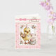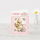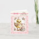 Une jolie carte avec une poussette jaune dans un casquette de fête, une guirlande fleurie et un gâteau pastel. Orné de rayures roses et de fleurs, il dit : "Bon poulet d'anniversaire !"