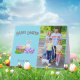 Bonne carte de voeux de Pâques : Célébrez Pâques avec cette carte de voeux de charme! Il présente un joli panier rempli de joie printanière, un oeuf coloré qui se jette d'oeil et un lapin curieux qui regarde à l'intérieur. Avec ses couleurs pastel vibrantes et son design fantaisiste, cette carte de voeux est une façon merveilleuse de partager la joie de Pâques avec vos proches. Vous pouvez personnaliser les tasses avec vos photos ou messages préférés.