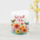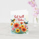 Cette carte de voeux bientot présente un beau tableau aquarelle d'un bouquet coloré de fleurs dans les tons rouge, orange, jaune et rose, avec des tiges et des feuilles verts luxuriants, et des fleurs bleues délicates entrecoupées dans tout. Le bouquet plein de vie s'oppose à un arrière - plan bleu clair et doux, créant une atmosphère apaisante et joyeuse. Deux oiseaux turquoises sont perchés sur les tiges, un de chaque côté, ajoutant une touche de fantaisie au design général. Le message sincère "Get Well and Feel Better..." est écrit élégamment en caractère rouge cursif en haut de l'image, centré et étirant sur la largeur de la page sur un arrière - plan blanc immaculé. 🌺 🕊️ Envoyer cette carte à un proche ravira votre journée et fera remonter votre esprit grâce à son design coloré et charmant. La combinaison de l'agencement floral, la toile de fond bleue apaisante et le doux sentiment exprimé dans l'élégante police de script fait de cette carte une façon parfaite de transmettre vos souhaits et votre soutien pendant leur temps de guérison. Qu'il s'agisse d'un ami, d'un membre de la famille ou d'un collègue, recevoir cette carte réfléchie est voué à leur apporter un sourire et à leur faire savoir que vous y pensez. Allez-y bientôt ! 🌼 💙
