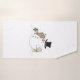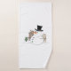 Illustration d'un bonhomme de neige de Noël dans une scène de neige avec des maisons recouvertes de neige et un arbre dans l'arrière - plan.