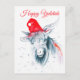 Carte solstice hiver personnalisée avec chèvre blanche en casquette de Noël. Aquarelle de Zaira Dzhaubaeva.