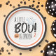 Halloween Geburtstagszeitung Teller für die Oktober-Feiern spielen "Ein kleiner Boo dreht sich...." Typografie mit einem niedlichen Aquarellghost und Jack o'lantern und handgeschriebenen Schriftzeichen Akzente. Die Farben Grau und Orange sind perfekt für ein Mädchen oder einen Jungen. Kunst von KL Stock.