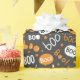 Boo Halloween Handlettern auf schwarz Geschenkpapier