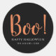 Halloween Aufkleber zeigt Boo Gruß im modernen Script-Schriftart.