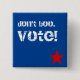 Quadratischer Knopf mit einem blauen Hintergrund.