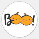 Fügen Sie alles, was Sie sich mit Halloween-Aufklebern vorstellen können, mit einer Touch der Knackigkeit hinzu. Der Boo-Sticker Zauber das Wort "boo" mit zwei lächelnden orangefarbenen Kürbissen aus.