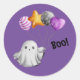 Boo! Whimsical Geist mit Balloons Runder Aufkleber