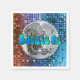 50 Servietten aus weißem Papier mit einem Bild von roten, blauen und lila Diskobeleuchtungen, einem strahlend spiegelglänzenden Disco-Ball und "Boogie On" in blau und grün im 70er-Stil. Siehe dazu passende Tischdecke, Küchenhandtuch, Tischset, Tischset aus Papier und Untersetzer. Sehen Sie sich die gesamte Disco 70er Napkin Kollektion im NAHRUNGSMITTEL/BEV an. | Wäsche.