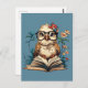 Ein niedlicher Vogel, der eine Brille trägt und auf einem offenen Buch sitzt