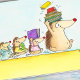 Die kleinen Igel laufen hinter dem großen Igel und tragen ihre besten Schlafanzüge. Es ist Zeit, ein Buch für eine Gutenachtgeschichte zu wählen.