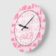 Books Pattern in Pink. Reading Theme with Initials Große Wanduhr