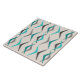 Ein abstraktes Kunstdesign aus der Mitte der 50er Jahre mit Bumerangreihen. Aquamarine blau-grün.