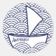 Klassischer Rundaufkleber mit einem Boot auf japanischem Wellenmuster. Passen Sie den Aufkleber mit Ihrem Namen oder Ihrem eigenen Text an.