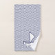 Ein Badetuch-Set mit einem Boot auf japanischem Wellenmuster. Die Handtücher können Sie mit Ihrem Namen oder Ihrem eigenen Text anpassen.