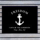 Eine schicke, moderne nautische Tür für Ihr Boot, die eine weiße Abbildung eines Ankeres auf schwarzem Hintergrund zeigt. Personalisieren Sie mit dem Namen Ihres Bootes, dem Namen des Kapitäns oder der Familie oder etwas Ähnliches, und einem Standort.