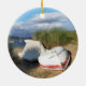 Ein fotografisches Design von Booten in den Sanddünen und entfernten Booten, die im Hafen gepfercht. Wales UK.