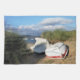 Ein fotografisches Design von Booten in den Sanddünen und entfernten Booten, die im Hafen gepfercht. Wales UK.