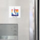 Unser Boat Color Square Laguna Beach Magnet eignet sich ideal für Zuhause-Küchen-, Büro- oder Küchen-Kühlschrank und zeichnet sich durch ein schlichtes und elegantes Design aus, das mit einer anmutigen Gradation von Ozean-zu-Sonnenuntergang-Regenbogenfarben unterlegt ist.
