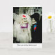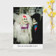 Halloween Card mit einem beängstigenden Skeletthaus auf der Vorderseite als Braut und Bräutigam verkleidet. In der Bildunterschrift steht: "Du bist so schön zu mir"
