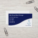 Bootsspeicher-Visitenkarten mit Bootsanker und blauem und weißem Hintergrund, zusammen mit großem Textplan können Sie jetzt personifizieren. Beste Visitenkarten entworfen als Visitenkarteschablone für eine Bootsspeicheranlage, Bootsbelege oder Jachthafen.