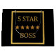 Ein grafisches Bild von fünf goldenen Sternen mit dem Text 5 Sterne Boss von Künstler/Designer Charmaine Paulson auf einer Geschenktasche.
