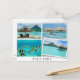 Postcard with a leihe of four landscapes on Bora Bora with lot of water of the great turquoise lagoon with sharks and overwater resorts with fotos with a white edge and one twisted like it is loose and with the text: 'Bora Bora' It is hat Great Vacation Souvenir.
