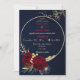elegante luxuriöse burgundische Blume mit einigen goldenen Blätter auf Goldkranz vor marineblau Hintergrund Hochzeitseinladung Die Glitzer Details werden simuliert