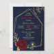 Romantische bordeauxfarbene Blume und goldene Blätter auf goldgeometrischen Rahmen Luxus Marineblau Brautdusche Einladung Die Glitzer Details werden simuliert