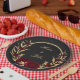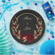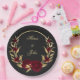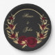 bordeauxfarbene Blume goldene Blätter schwarz Pappteller