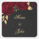 bordeauxfarbene Blume, goldene Blätter schwarz Quadratischer Aufkleber