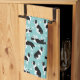 Niedliche Schwarz-Weiß-Colliese sitzen, bleibe und rollen auf blauem Hintergrund mit Pfosten, einem lustigen Hundeschema.