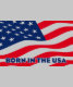 Wavy American flag with bold red and black stripes and blue stars. “Born in the USA” statement for patriotic pride. Great for Independence Day, veterans, and USA supporters.