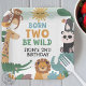 Little Boy Born Two Be Wild Paper Plate. This cute and whimsical safari and jungle themed plate features jungle and safari animals in a bohemian style for a little one's 2nd birthday. Coordinating invitations, signs, and other party decorations available.