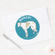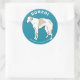 Aufkleber mit einer Illustration eines Borzoi stehend nach einem blauen Hintergrund.