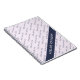 Ein motivierend Textmuster, das "Boss Lady CEO" in dunkelblauen Hauptstädte ausdrückt, ist Set in einem 45 Grad Winkel auf einem zarten hellvioletten Hintergrund. Ein Band des gleichen dunkelblauen ist über das Muster im selben Winkel gelegt, auf dem man seinen Namen setzen kann (oder den der besonderen Bossdame, der man dieses Notizbuch als Geschenk gibt). Sie können sowohl das einzigartige Typografie-Muster als auch den Namen auf der Personalisierungsvorlage ändern (sehen Sie sich einfach an, dass der Mustertext nicht zu lang ist, um den Textrahmen anzupassen).