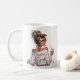 This mug is shown with a cute fashionable boss lady with a purpose art print.