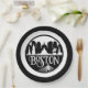 Diese neue Schwarz-Weiß-Illustration der Bostoner Skyline zeigt viele bekannte Sehenswürdigkeiten, darunter das Gebäude der Hauptstadt, den Zollturm, den Hancock, Old Hancock und die Prudential-Gebäude sowie die Zakim-Brücke und das Finanzviertel.