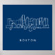 Dieses Design zeigt eine handgezeichnete Skyline von Boston auf braunem Hintergrund.