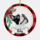 Boston Terrier Ornament mit rotem Büffelhintergrund und Urlaubskleidung - Kunst wurde von mir handgemalt und als dieses bezaubernde Ornament zur Verfügung gestellt! Fügen Sie einen Text hinzu (vorgeschlagen: "Ich ❤️ mein Boston" oder den Namen Ihres Süßes) besuchen Sie www.curella.net für ein individuelles Portrait, Aufkleber und mehr.