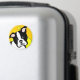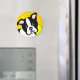 Cartoon Boston Terrier Art auf hellorangefarbenem Hintergrund mit gelben Kreisen