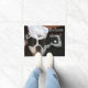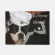 Schwarzweiss-Boston-Terrier mit "Willkommen an Bord" der Mitteilung, Hund trägt Seemannausstattung. Fühlen Sie bitte sich frei, Text zu addieren, zu ändern oder zu entfernen, wenn Sie mögen.