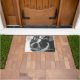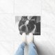 Schwarzweiss-Boston-Terrier mit "Willkommen - Mitteilung bitte wischen Sie Ihrer Tatzen" ab. Fühlen Sie bitte sich frei, Text zu addieren, zu ändern oder zu entfernen, wenn Sie mögen.