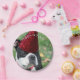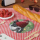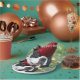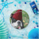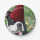 Ein Boston-Terrier mit einem roten Partyhut an.