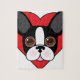 Eine niedliche Illustration eines Boston-Terriergesichtes mit einem roten Herzen im Hintergrund