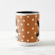Ein cooler Boston Terrier auf braunem Hintergrund mit weißen Polka-Punkten.